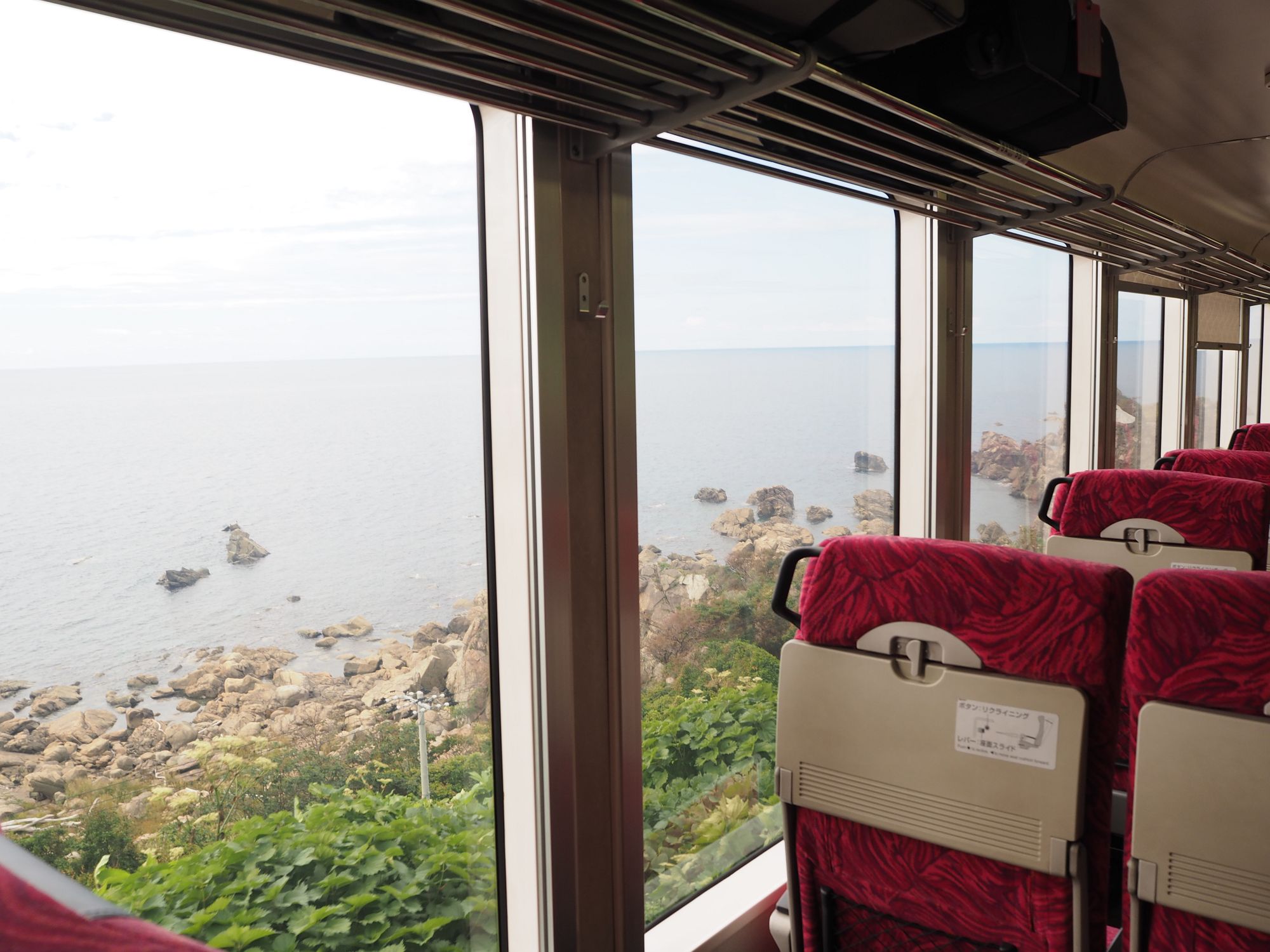 この列車は本当に窓が大きく腰のあたりまで窓があるため、特に海側の座席はかなり迫力があります。