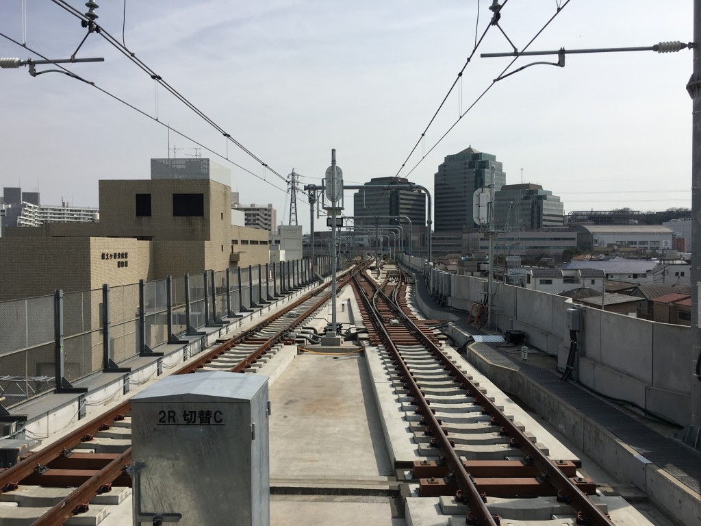 今回は下り線のみ高架化。写真左側の上り線はまだ工事中となっています。