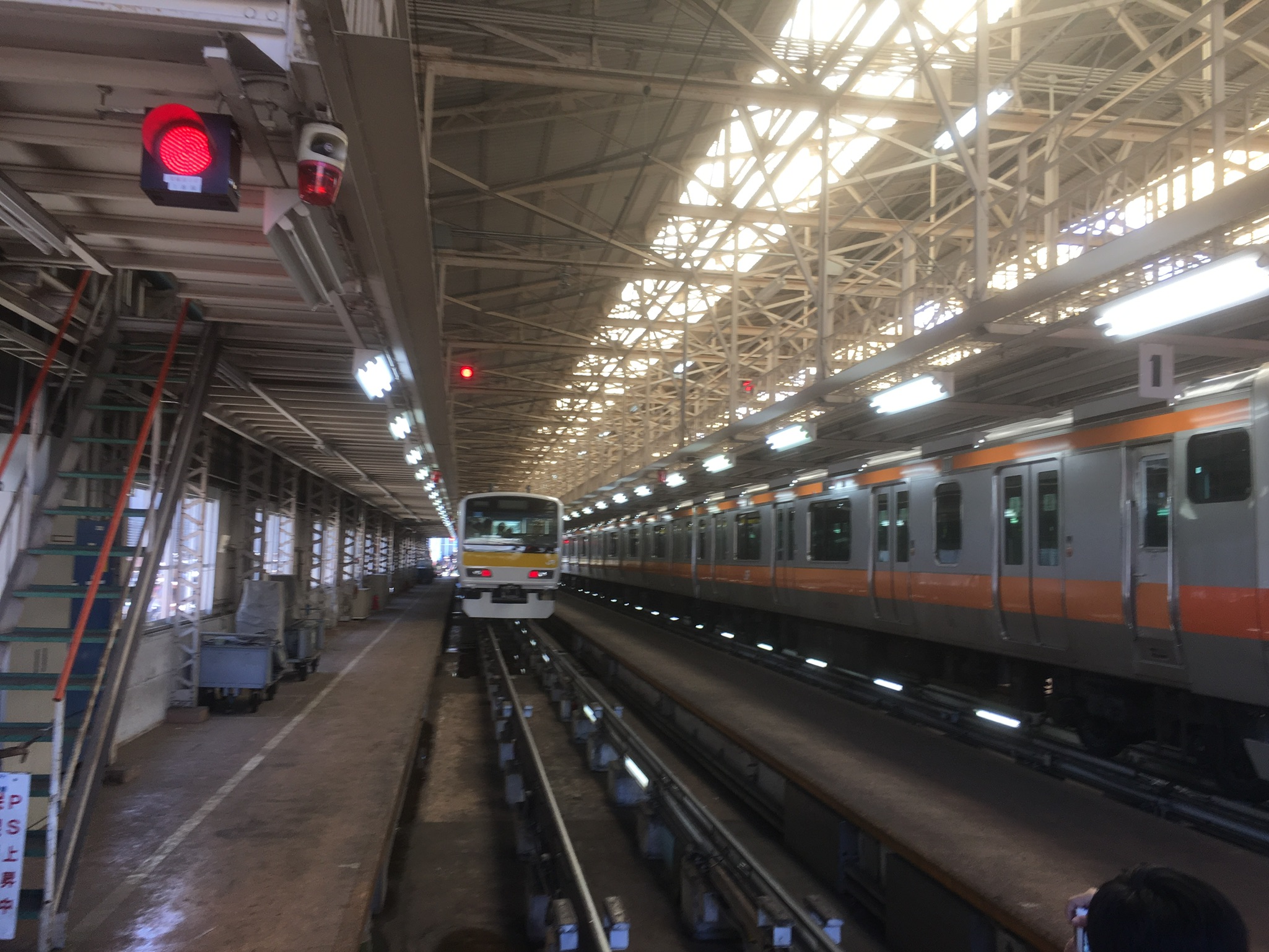 こちらはメンテナンス中のE235系配線の多さに驚きます。これだけのケーブルを間違いなく配線するのは大変だろうと思います。